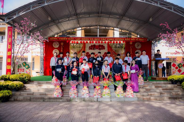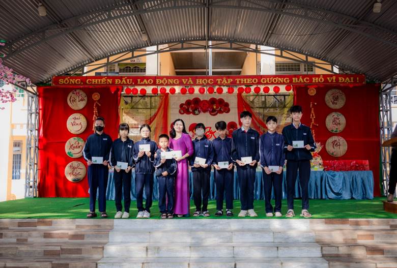 Bên cạnh các hoạt động vui tươi, sôi nổi của ngày hội, Ban Tổ chức đã dành một phần thời gian trang trọng và đầy ý nghĩa để biểu dương, trao tặng 71 phần quà trị giá 71 triệu đồng để động viên tới các học sinh có tinh thần nỗ lực, ý chí vươn lên và thái độ rèn luyện nghiêm túc trong học tập. Đây không chỉ là sự ghi nhận kịp thời đối với những em học sinh còn gặp nhiều khó khăn, mà còn thể hiện sự quan tâm sâu sắc, niềm tin và kỳ vọng của nhà trường đối với thế hệ tương lai.