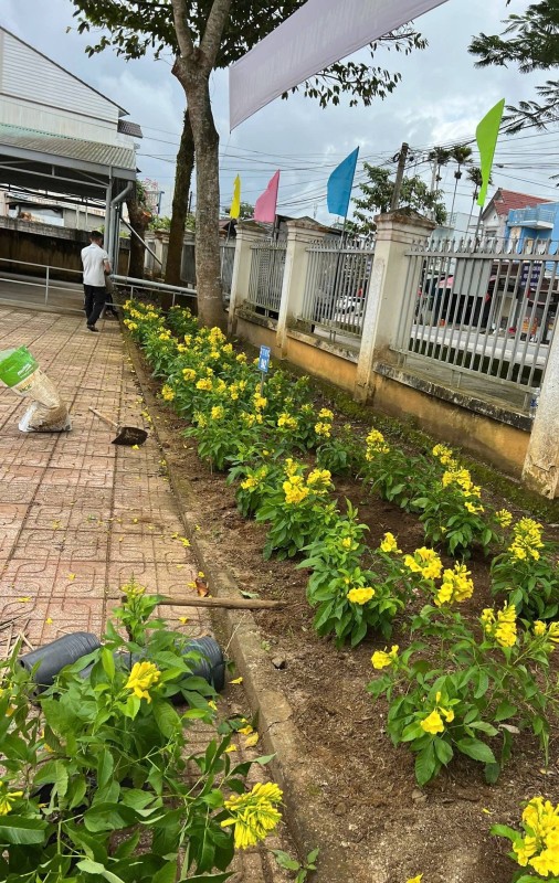 - Trồng mới 15 bồn hoa với diện tích khoảng 210 m², gồm nhiều loại cây, hoa đa dạng: mắt nai lá tím, chuỗi ngọc, hoa ngũ sắc, cúc mặt trời, muồng vàng, dừa cạn, cảm tú mai, huỳnh liên, mai địa thảo, chuối thiên điểu, …